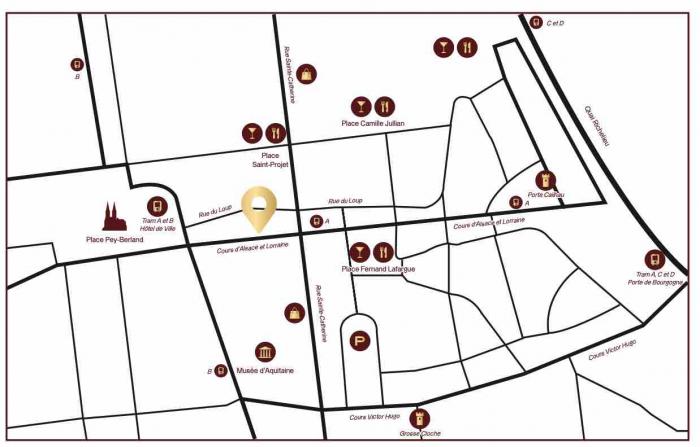 L'immeuble du 113 cours d'Alsace Lorraine est situé au coeur de Bordeaux à proximité immédiate de la place Pey Berland et de la rue Sainte Catherine, rue commerçante et piétonne la plus longue d’Europe. Cette opération de rénovation du 113 cours d'Alsace Lorraine bénéficie sans conteste d'une adresse de tout premier plan en plein centre ville. Ce quartier très animé et commerçant regroupe des bâtiments classés monument historique et de beaux immeubles modernes. Le quartier propose de nombreux services publics et est doté d’une vie de quartier dynamique.